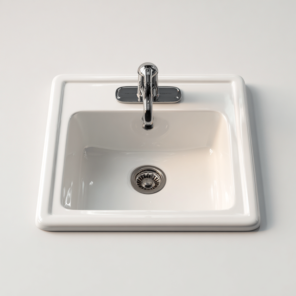 Lavabo in ceramica 46x46x15 cm - bianco - per bagno - design geometrico moderno