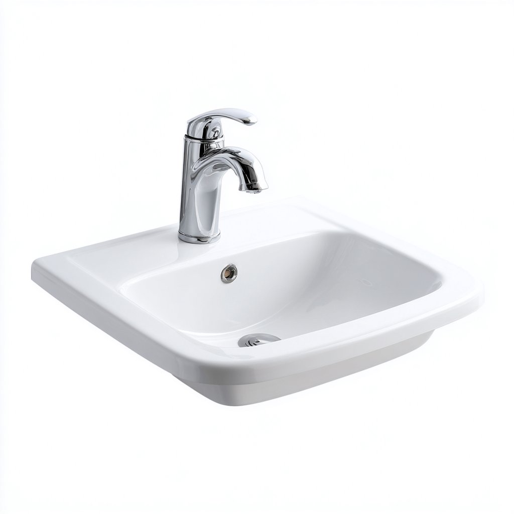 Lavabo in ceramica 55x40x16 cm - bianco - per bagno - design essenziale moderno