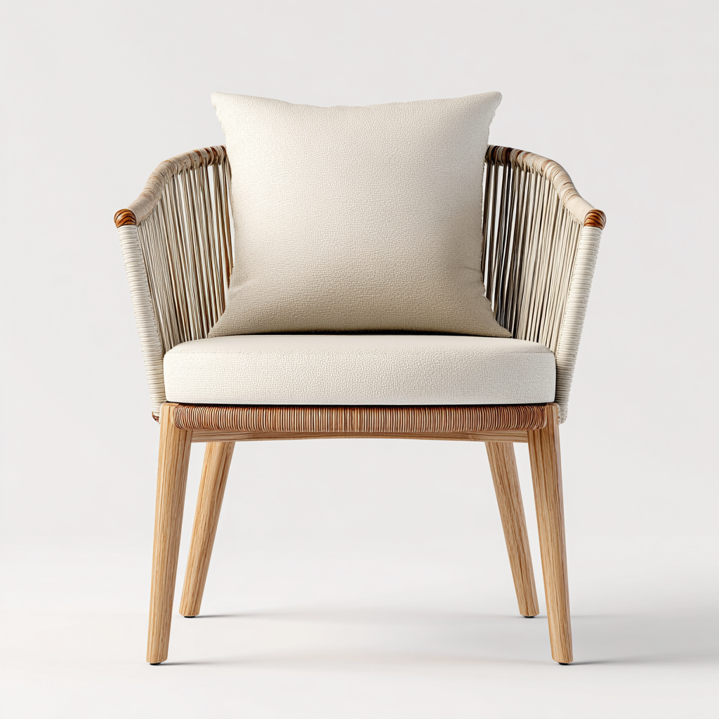 Sedia da pranzo da esterno in legno e corda 58x60x80 cm - bianco-marrone - per giardino - design moderno