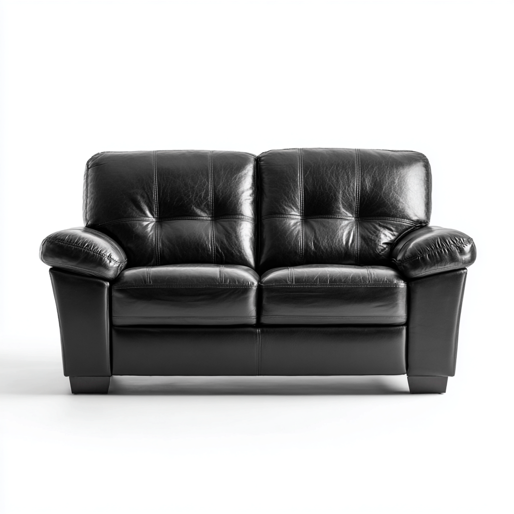 Questo divano a due posti in pelle nera offre un'estetica moderna e robusta, ideale per creare un ambiente elegante e confortevole nel salone.
