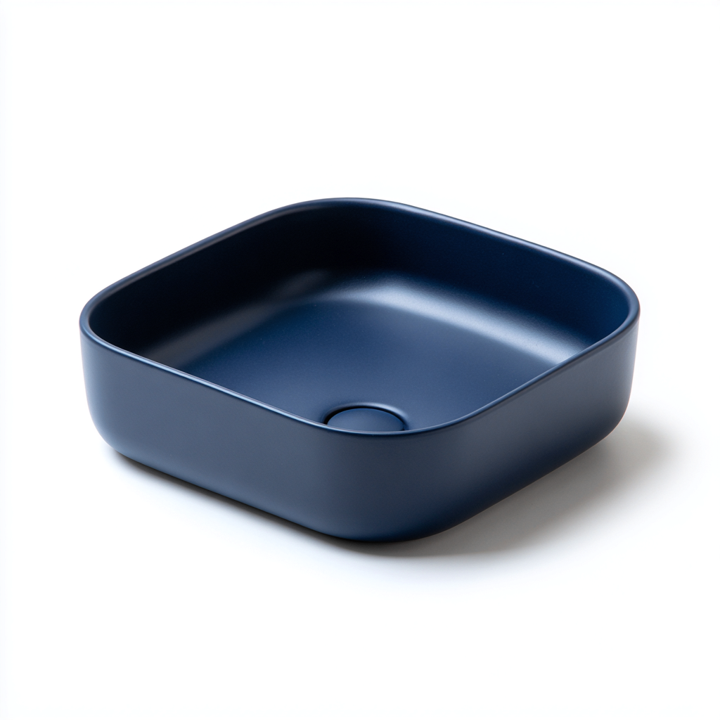 Il lavabo e realizzato in ceramica con finitura blu scuro opaca. La superficie risulta liscia e compatta, offrendo una buona resistenza all uso quotidiano e una finitura uniforme nel tempo.
