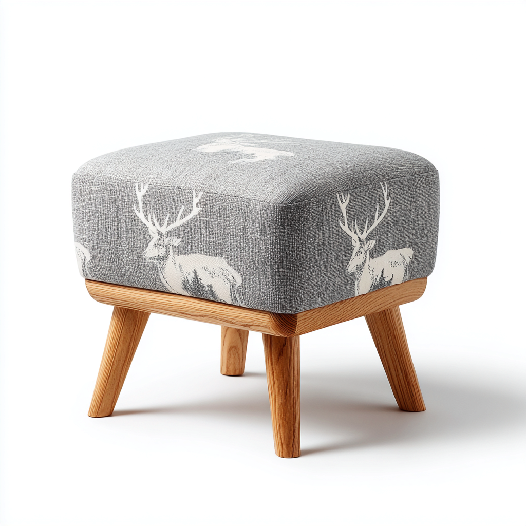 Il pouf è rivestito in tessuto di colore grigio con motivo decorativo discreto, piacevole al tatto e adatto all'uso quotidiano. La finitura neutra permette un facile inserimento in diversi stili di arredamento.