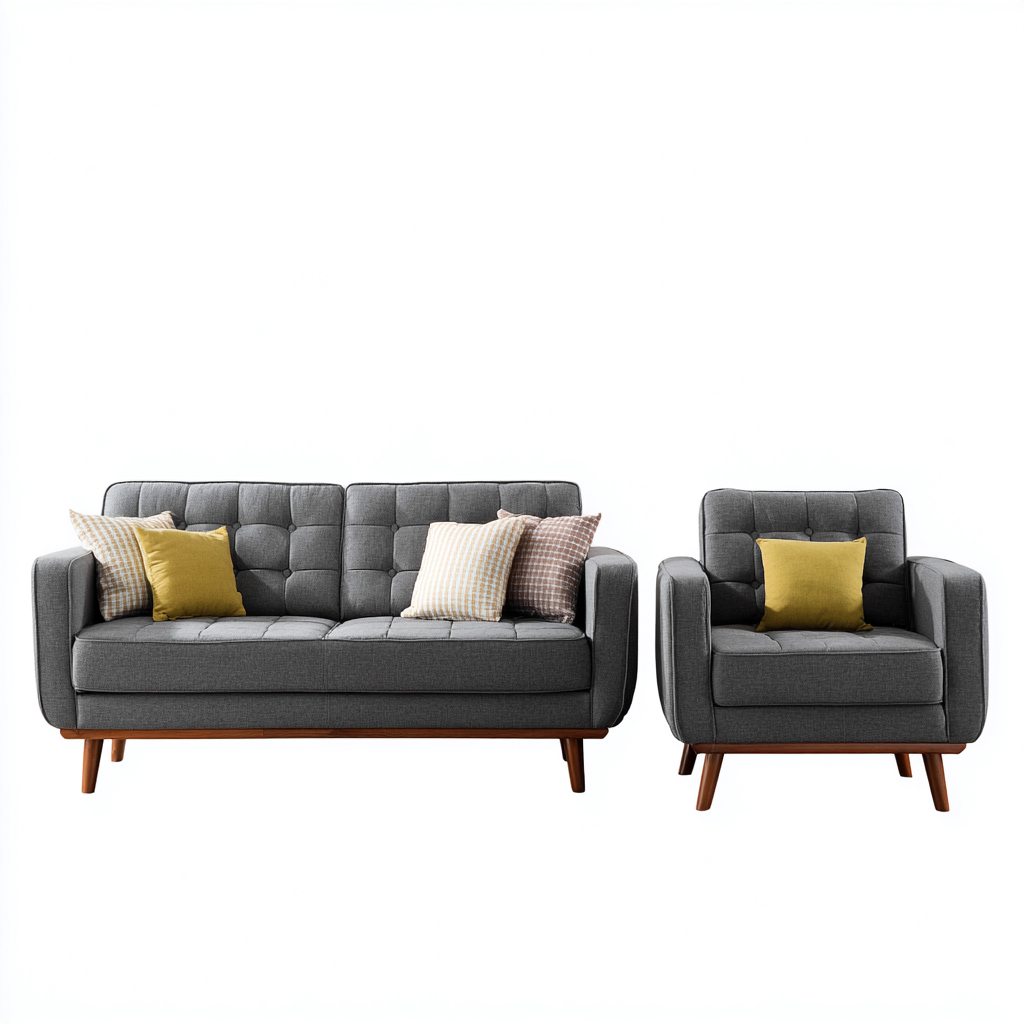 Set divani per soggiorno composto da una seduta principale e una seduta singola coordinata, ideale per arredare ambienti living moderni con uno stile equilibrato e accogliente. Le forme compatte e le proporzioni armoniose garantiscono comfort quotidiano e un'estetica ordinata.