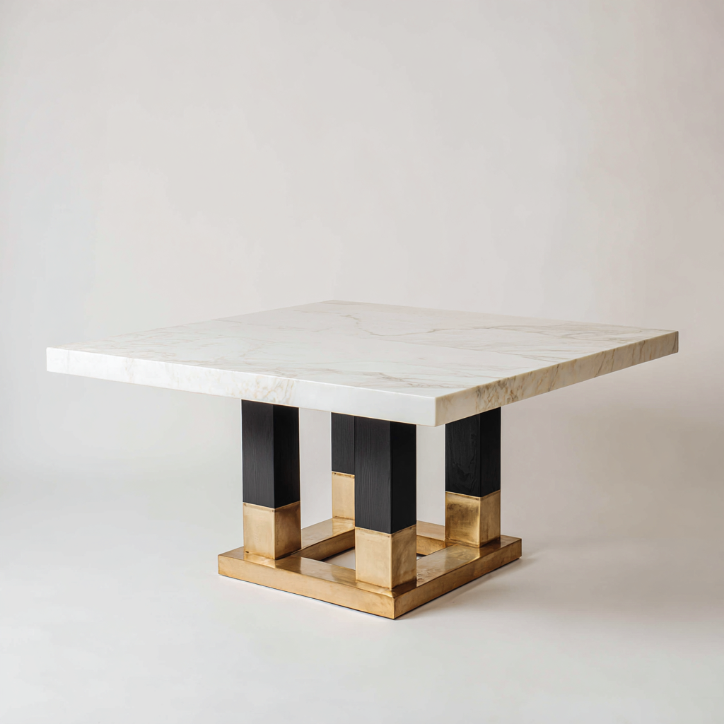 Questo tavolo da pranzo è progettato per ambienti dining eleganti e contemporanei. Il piano quadrato offre una superficie ampia e stabile per l'uso quotidiano e per occasioni conviviali, mentre la base centrale garantisce un equilibrio visivo solido e raffinato.